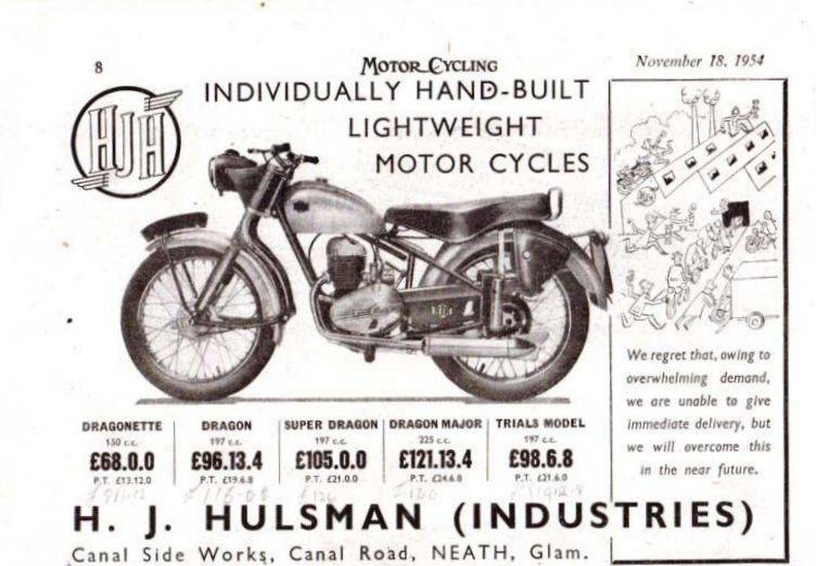 Advertentie uit Engelse krant uit 1954 het is opmerkelijk dat hier de naam Hulsman wel met een N geschreven wordt