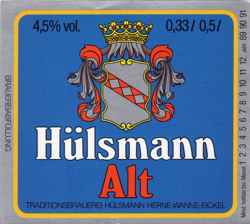 Op deze pagina de verzamelde items van de Hulsmann Brauerij uit Herne (D)