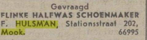 Op dit gedeelte van de site vind u een aantal foto`s , documenten , advertenties die betrekking hebben op de schoenmakerij en winkel van Frans en Mien Hulsman die vanaf de eind dertiger jaren tot medio 1976 in de Molenhoek voorheen de Heumensche Molen te vinden was